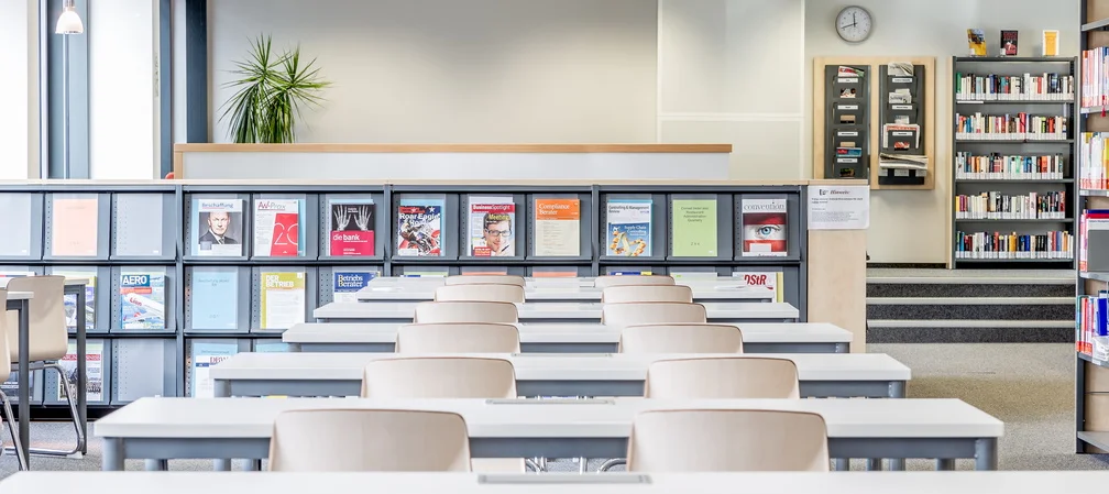Die Hochschulbibliothek bietet Zugang zu Fachliteratur und Fakteninformationen in digitaler und gedruckter Form und steht als zentraler, multimedialer Lernort zur Verfügung.