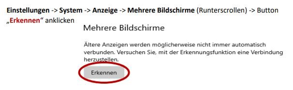 - Falls Ihr Laptop den 2. Bildschirm nach dem Anschließen noch nicht automatisch erkannt hat, können Sie in die: