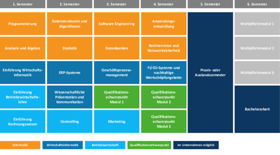 Das Bild zeigt den Studienverlaufsplan des Bachelorstudiengangs Wirtschaftsinformatik.